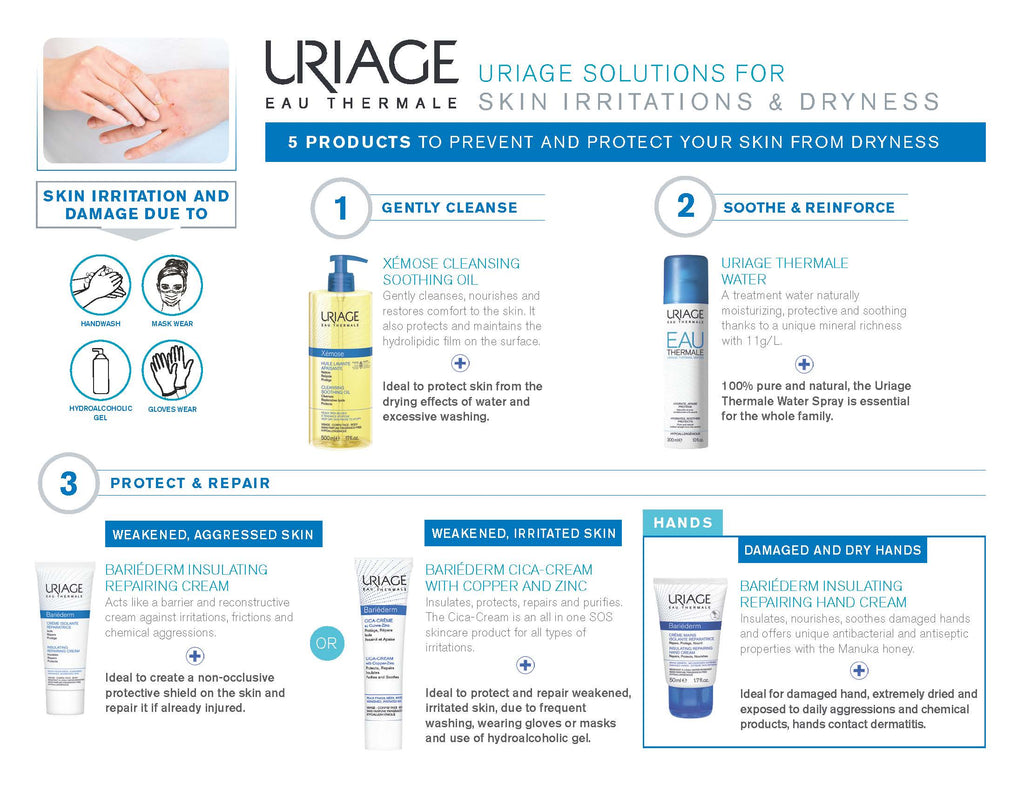 Uriage solutions for skin irritations and dryness. 5 products to prevent and protect your skin from dryness.